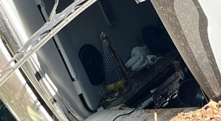 Imagem de Nossa Senhora fica intacta dentro de caminhão que tombou na ERS-324 |