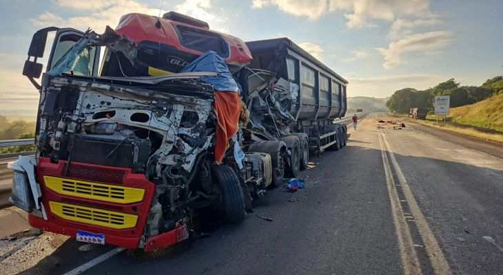 Colisão entre duas carretas ocorreu na manhã desta quarta-feira (18)