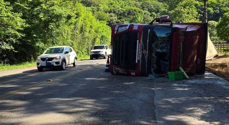 Tombamento de caminhão foi registrado no fim da terça-feira (18)
