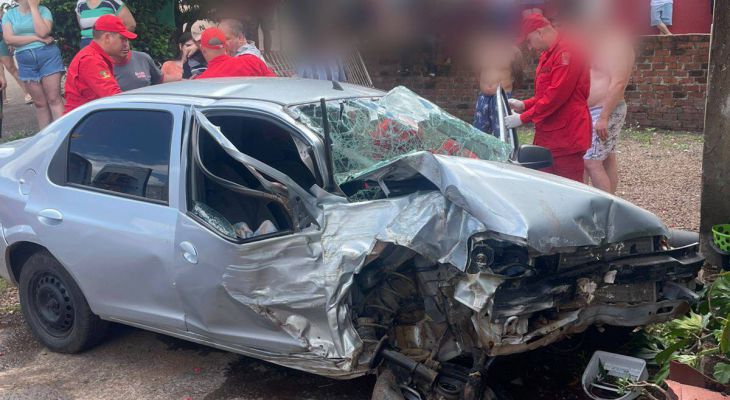 Carro colide em residência no bairro Santa Rita, em Marau