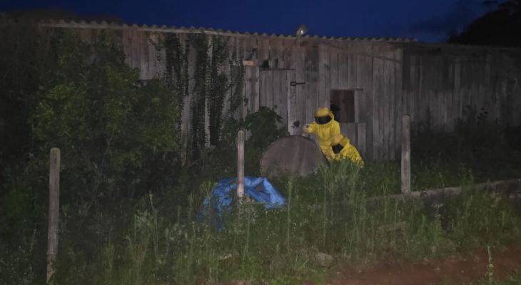 Diante da inexistência de um apicultor disponível no município para realizar o manejo adequado e da urgência em garantir a segurança pública, os bombeiros realizaram o extermínio das abelhas.