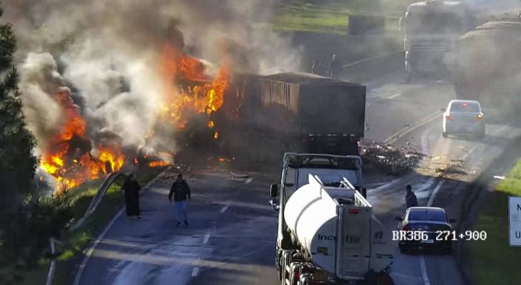 O grave evento provocou o bloqueio total da pista por aproximadamente três horas. Equipes do Corpo de Bombeiros atuaram no local para extinguir as chamas e resfriar os caminhões.