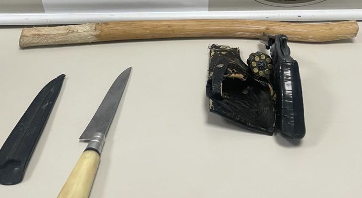 Segundo a BM, o homem poderia estar portando uma arma de fogo. Ao chegar ao local, os policiais visualizaram uma caminhonete estacionada próximo ao endereço informado e realizaram a abordagem de um homem de 36 anos. Durante a busca veicular, foi encontrado um revólver calibre .22, carregado com oito munições.