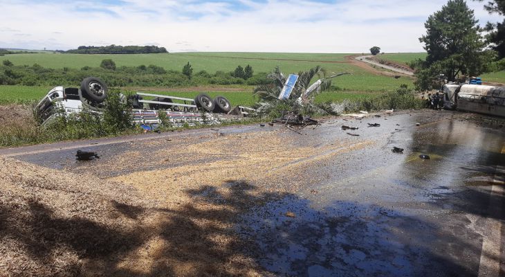 O Batalhão Rodoviário da Polícia Federal atende no final da manhã desta terça-feira (16/12), na ERS 463 Km 2 - entre Coxilha e Tapejara/RS, a um sinistro de trânsito com lesões corporais. A colisão envolveu uma carreta bitrem carregada de óleo vegetal, um caminhão com farinha e outro transportando soja.